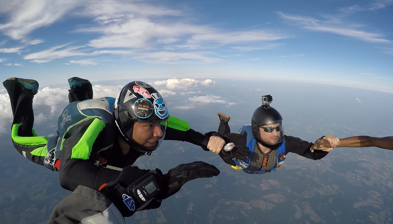 I’m not 100 percent sure. I did my first skydive in 2006 when I was 19. I went with three friends and we all did tandems. We made the drive all the way to San Marcos which was 4.5 hours away. We drove there and back the same day. Since that day, I knew that I wanted to become a licensed skydiver but I didn’t have the money or a good facility near me until I moved to the Washington DC area.